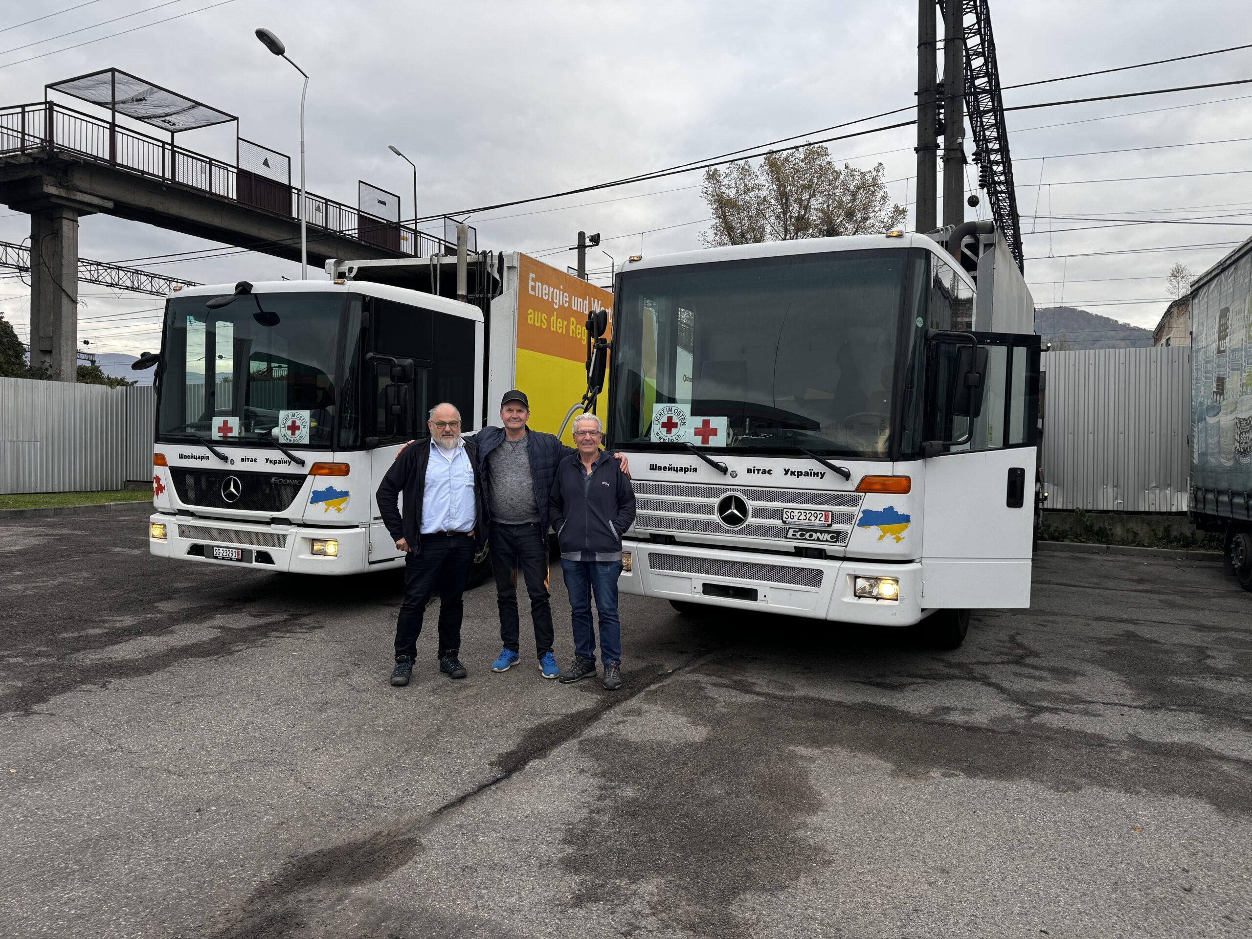 Seit dem Sommer stehen im Einzugsgebiet des ZAB sechs neue Elektro-Kehrichtfahrzeuge im Einsatz. Mit dieser Modernisierung wurde die Fahrzeugflotte erneuert. Anstatt die ausrangierten Sammelfahrzeuge zu verkaufen oder zu versteigern, entschied sich der ZAB bewusst für eine Spende, um die kommunale Infrastruktur in der Ukraine zu unterstützen, die aufgrund des anhaltenden Kriegs stark belastet ist.