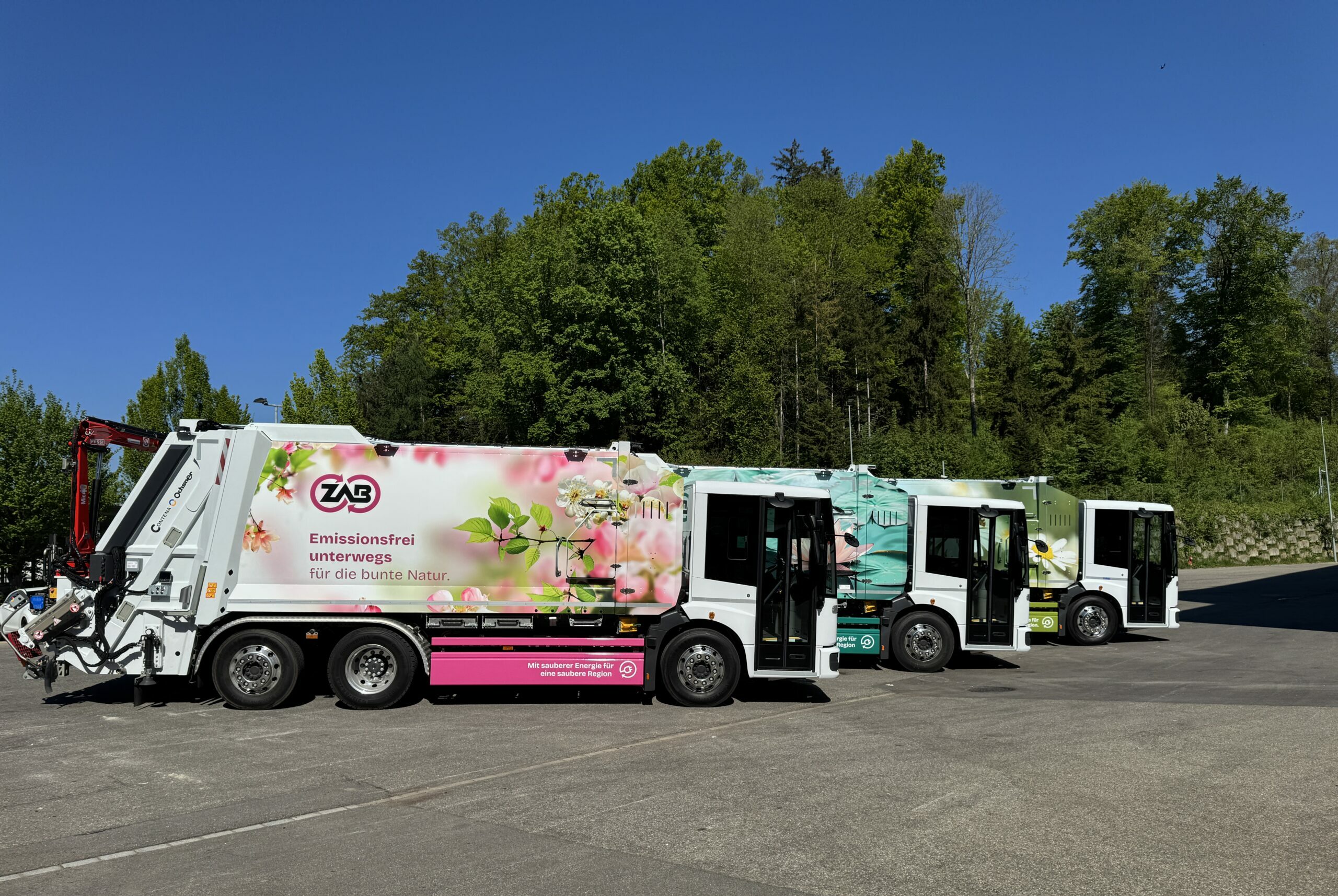 Die bestehende Fahrzeugflotte des ZAB ist veraltet und wird in den nächsten vier Jahren schrittweise erneuert. Künftig setzt der Verband dabei auf den Einsatz von Elektrofahrzeugen. Im Vorfeld der Versammlung hatten die Delegierten Gelegenheit, die ersten drei E-Sammelfahrzeuge aus nächster Nähe zu besichtigen – sie werden in den nächsten Wochen in Betrieb genommen. Mit diesem Schritt übernimmt der ZAB als öffentlich-rechtliches Unternehmen Verantwortung und will eine Vorbildrolle in Sachen Emissionen einnehmen. In seinen Leitideen betont der ZAB, dass Ökologie und Ökonomie gleichermassen wichtig sind. Zwar sind Elektrofahrzeuge in der Anschaffung teurer als Dieselfahrzeuge, dafür fallen die Unterhaltskosten geringer aus. Der benötigte Strom kommt zudem aus den eigenen Thermischen Anlagen – ein weiterer Schritt hin zu einem geschlossenen Energiekreislauf. Auch für die Mitarbeitenden auf dem Trittbrett bedeuten die neuen Fahrzeuge mehr Komfort: Sie sind leise und stossen keine Abgase aus. Bis im Sommer sollen weitere drei Elektrofahrzeuge dazukommen.